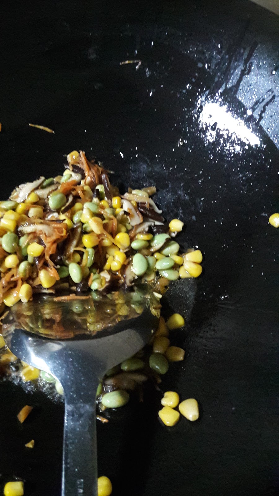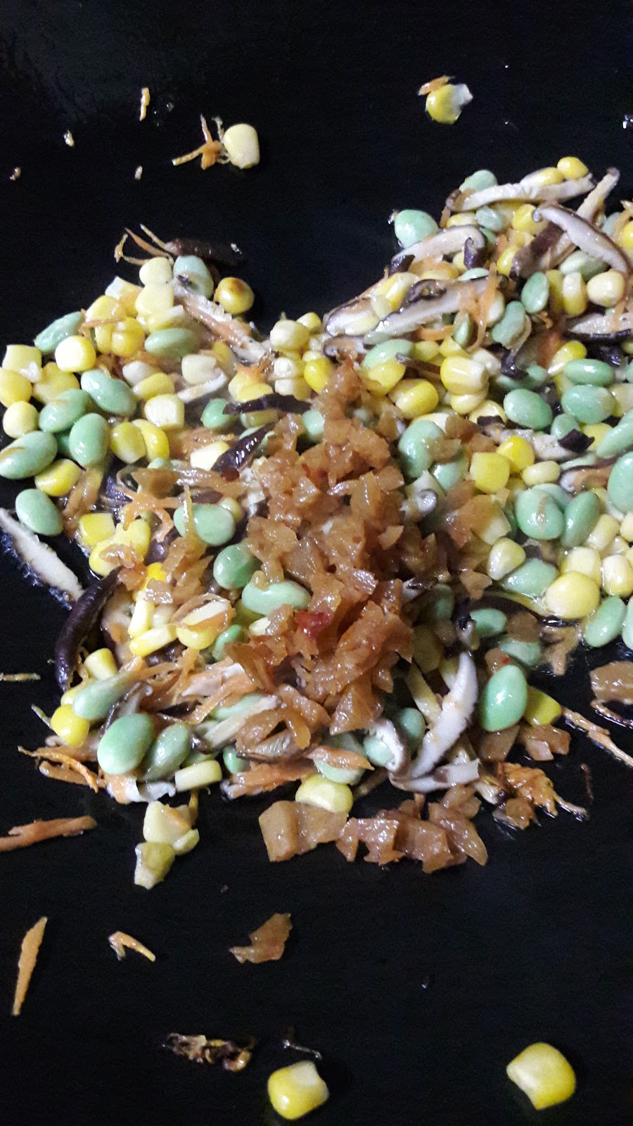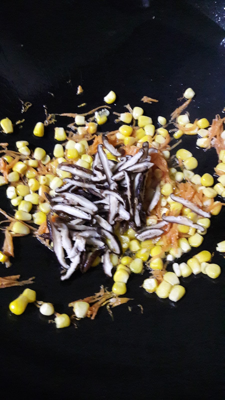 材料:白飯、玉米、青豆仁、胡蘿蔔絲、蘿蔔乾、香菇絲